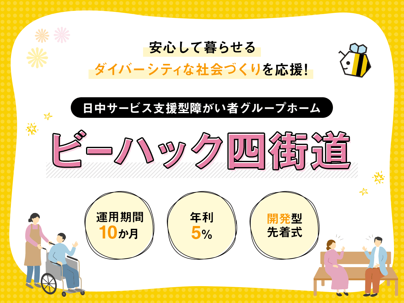 [Rimawari-kun] Funding for group home with daytime support services, “BEE-HACK” is now serialized! Offering of the second edition of the fund, "BEE-HACK Yotsukaido," will start at 19:00, Monday, May 29.