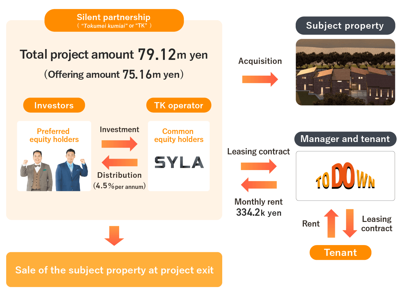 SYLA Co., Ltd. (Head office: Shibuya-ku, Tokyo; CEO: Yoshiyuki Yuto), a wholly owned subsidiary of SYLA Technologies Co., Ltd. (Head office: Shibuya-ku, Tokyo; CEO: Hiroyuki Sugimoto; NASDAQ: “SYT”), will open applications for two new funds, “Phase 2 DOTOWN HOUSE Ocean Front” and “Phase 2 DOTOWN APARTMENT Ocean Front,” in collaboration with DOTOWN Inc. (hereinafter “DOTOWN”), which aims for regional revitalization. The applications for these funds will commence simultaneously on Tuesday, March 26, 2024. The offering amounts are 36.76 million yen and 75.16 million yen, respectively (111.92 million yen in total).