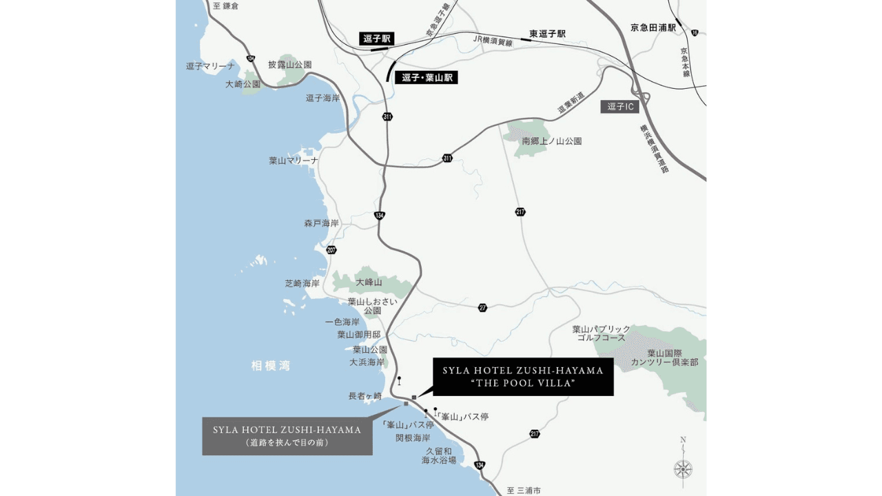 By car: 60 – 70 minutes from Tokyo via Metropolitan Expressway, 20 minutes from Zushi I.C.