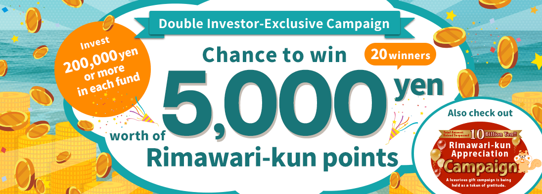 Invest 200,000 yen or more in each of the two funds being offered, and 20 lucky participants will be selected to receive 5,000 yen worth of Rimawari-kun Points, which can be used within the Rimawari-kun platform.
