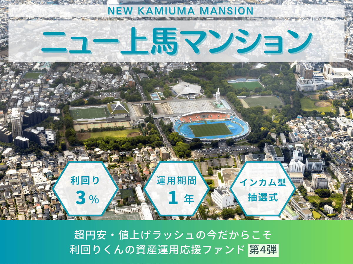 【利回りくん】2周年記念ファンド第2弾!6⽉19⽇(⽉)12時より「ニュー上⾺マンション」の募集弾!6⽉19⽇(⽉)12時より「ニュー上⾺マンション」の募集開始〜2周年記念として100万ポイント⼭分けキャンペーン開催中!