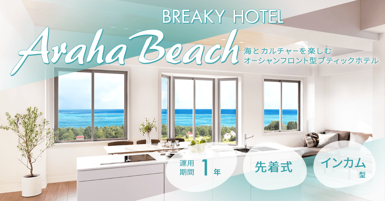 【利回りくん】南国の活気あふれるビーチエリアのリゾート物件のオーナーに!沖縄での運営実績を持つ株式会社DOTOWNが運営する「BREAKY HOTEL Araha Beach」をインカム型ファンドで組成いたします!