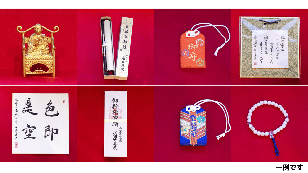 利回りくんの寄付型クラウドファンディングでは、寄付金額に応じて様々な返礼品を用意しています。高野山遍昭尊院の本堂にて祈祷済みお守りや品々のみならず、修復プロジェクトの進捗状況を報告する特別な情報提供や、感謝状の贈呈など、寄付者への感謝の気持ちを込めた返礼品をご用意しています。