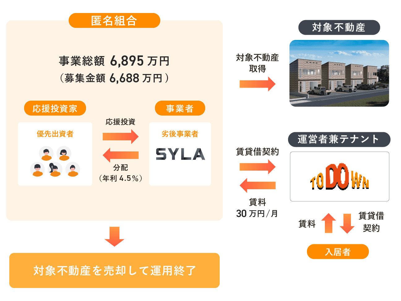 “応援を新しいカタチで”をコンセプトに、一口1万円から、社会貢献や地域創生、誰かの夢や挑戦に繋がる不動産に応援投資ができる“応援型不動産クラウドファンディングプラットフォーム”です。