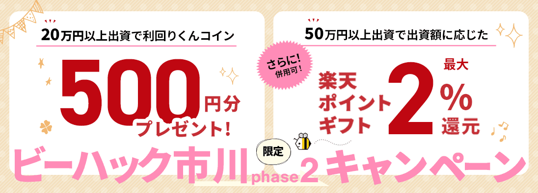 出資額に応じて最大2%還元となるお得な内容となっております。