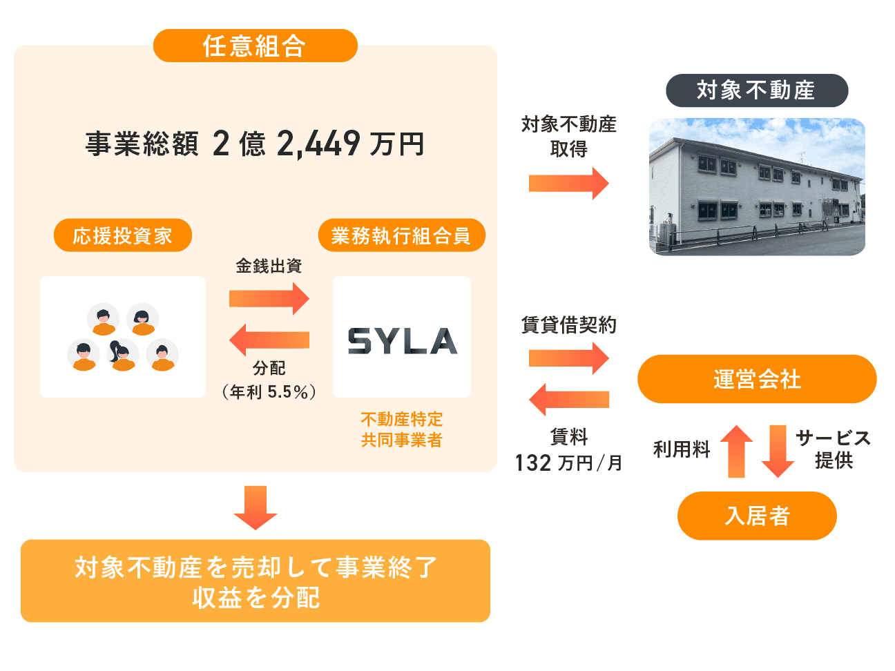 “応援を新しいカタチで”をコンセプトに、一口1万円から、社会貢献や地域創生、誰かの夢や挑戦に繋がる不動産に応援投資ができる“応援型不動産クラウドファンディングプラットフォーム”です。