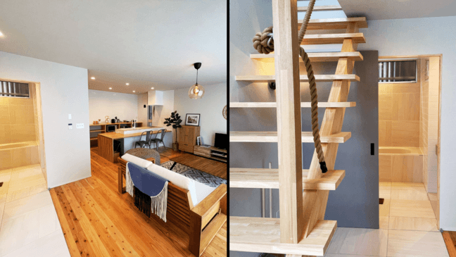 内装は「仕切りを最大限減らした解放感溢れるリビング」や「部屋の雰囲気を崩さないための収納スペース」などで、唯一無二のデザイン性と利便性を兼ね備えることを実現しています。他にも、海からそのままバスルームへ行けるアプローチや濡れても手入れがしやすいタイルといった、サーファーズハウスとしての使い勝手も最大限考慮されていて、住宅としてだけでなく、民泊物件としての利用なども充分に可能な物件です。