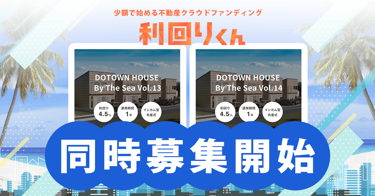 不動産クラファンの利回りくん、地域活性化ファンドシリーズ「DOTOWN HOUSE By The Sea Vol.13・Vol.14」を同日募集!