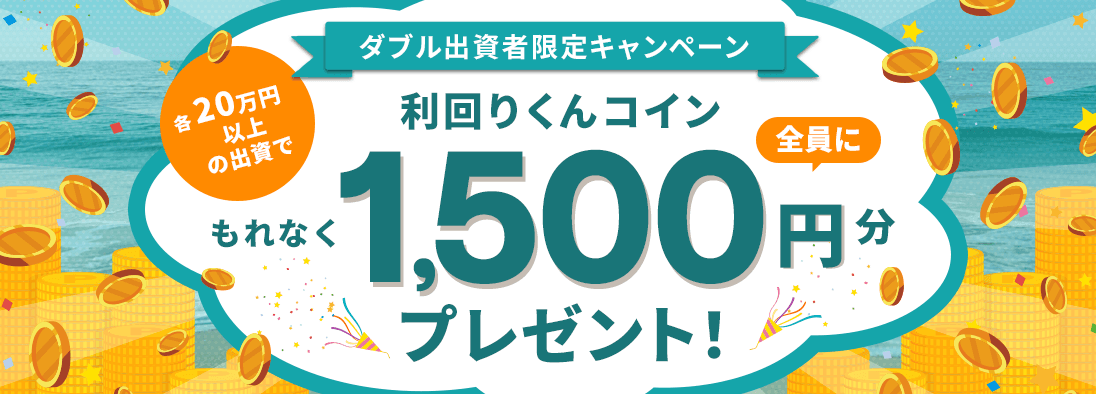 各ファンドに20万円以上出資で、全員に1,500円分の利回りくんコインをプレゼント!