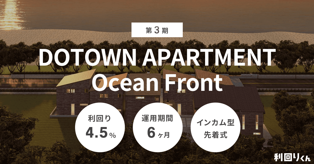 不動産クラファン利回りくんの短期間&償還実績ありの安定性ファンド、「第3期 DOTOWN APARTMENT Ocean Front」が組成!