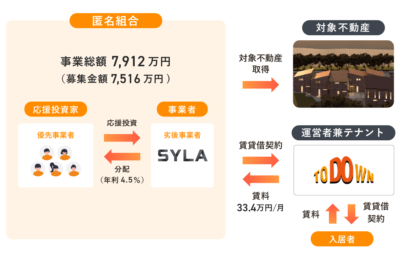 一方、本ファンドの対象エリアである千倉町では、DOTOWNが運営する「THE CHIKURA UMI BASE CAMP」周辺の賃貸住宅が不足しており、従業員の通勤負担が課題となっております。そこで、社員寮を整備することで、通勤コストや時間の削減を図り、従業員の皆様が地域の魅力をより身近に感じられる環境づくりを進めてまいります。