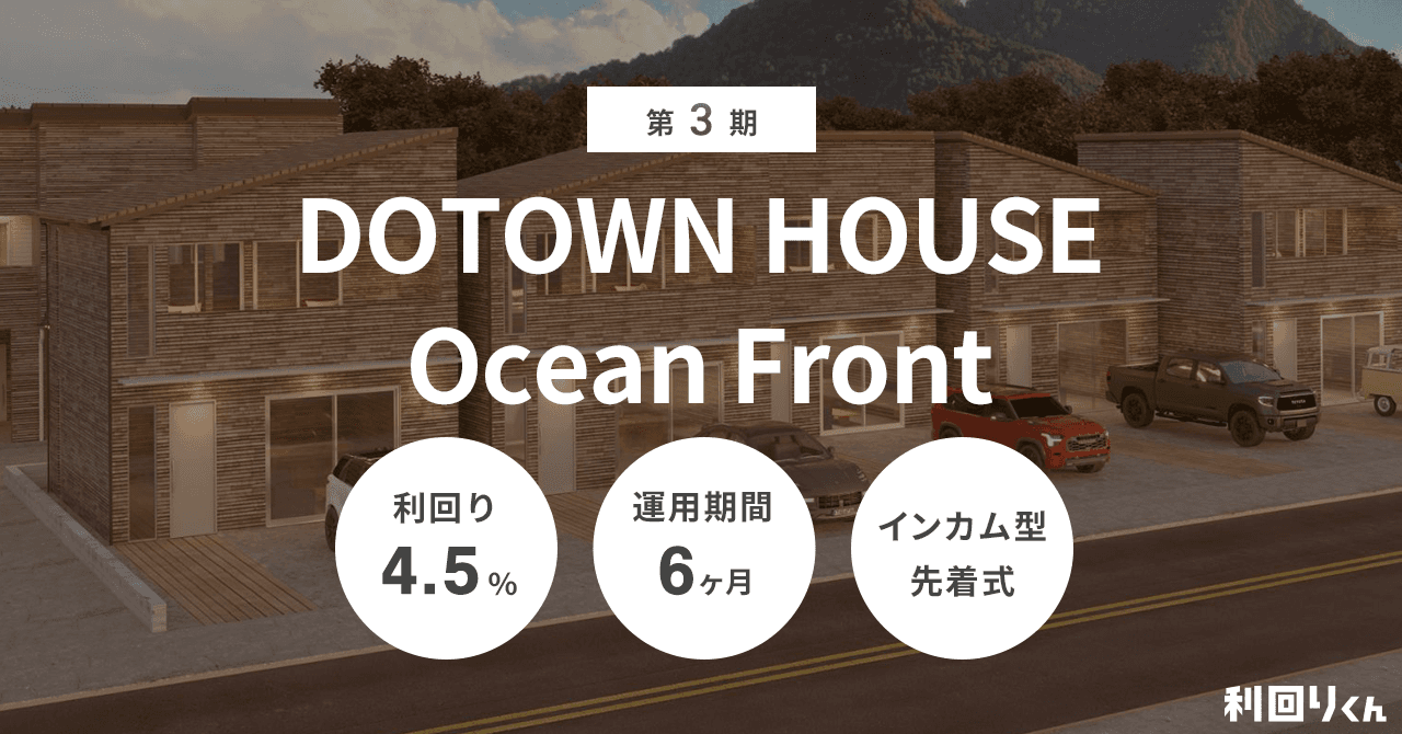 不動産クラファン「利回りくん」、家賃収益をもとに配当を行う6ヶ月運用型ファンド「第3期 DOTOWN HOUSE Ocean Front」を組成!